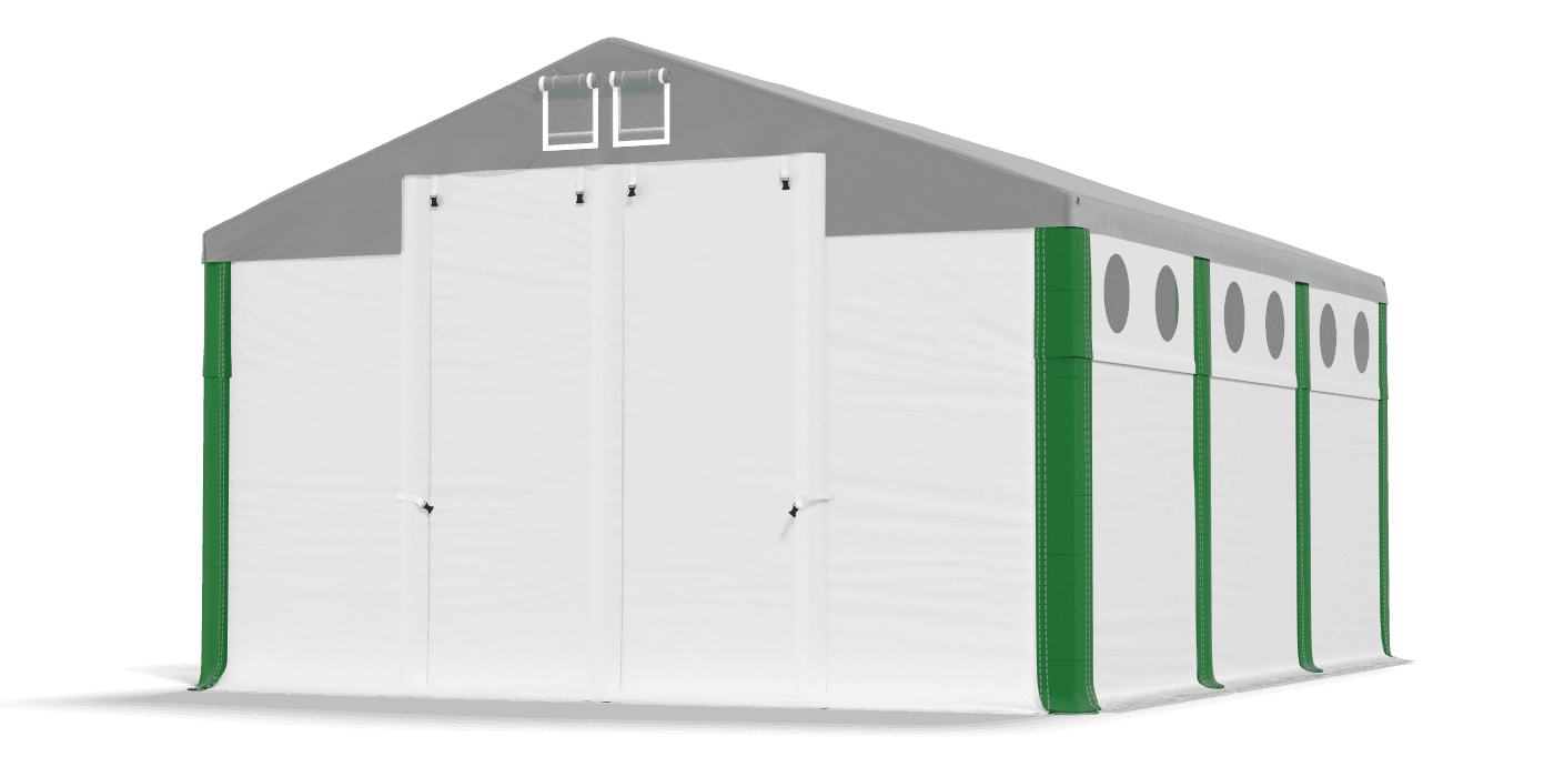 Każdy wjazd i wszystkie ściany boczne są montowane do konstrukcji namiotu oddzielnie, dlatego można w dowolny sposób łączyć ścianki pełne ze ścianami, które mają okna.