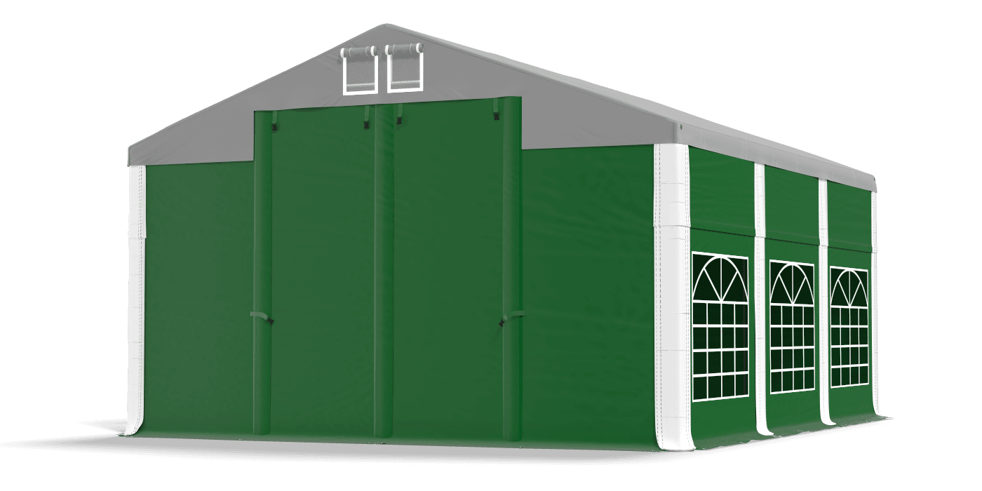 1 - Dach SD PVC (polichlorek winylu) ok. 560 g/m2 2 - Podwójna wentylacja z obu stron 3 - Wjazdy typu Slide & Roll 4 - Mocne zamki YKK przy wjazdach 5 - Rzepy uszczelniające 6 - Podniesienie ściany bocznej SD PVC ok. 2 x 1 m(polichlorek winylu) ok. 500 g/m2 7 - Wymienne Maskownice z rzepami uszczelniającymi 8 - Ściany boczne SD PVC 2 x 2 m (polichlorek winylu) ok. 500 g/m2 - Okna witrażowe 140 x 130 cm 9 - Dodatkowy fartuch retencyjny