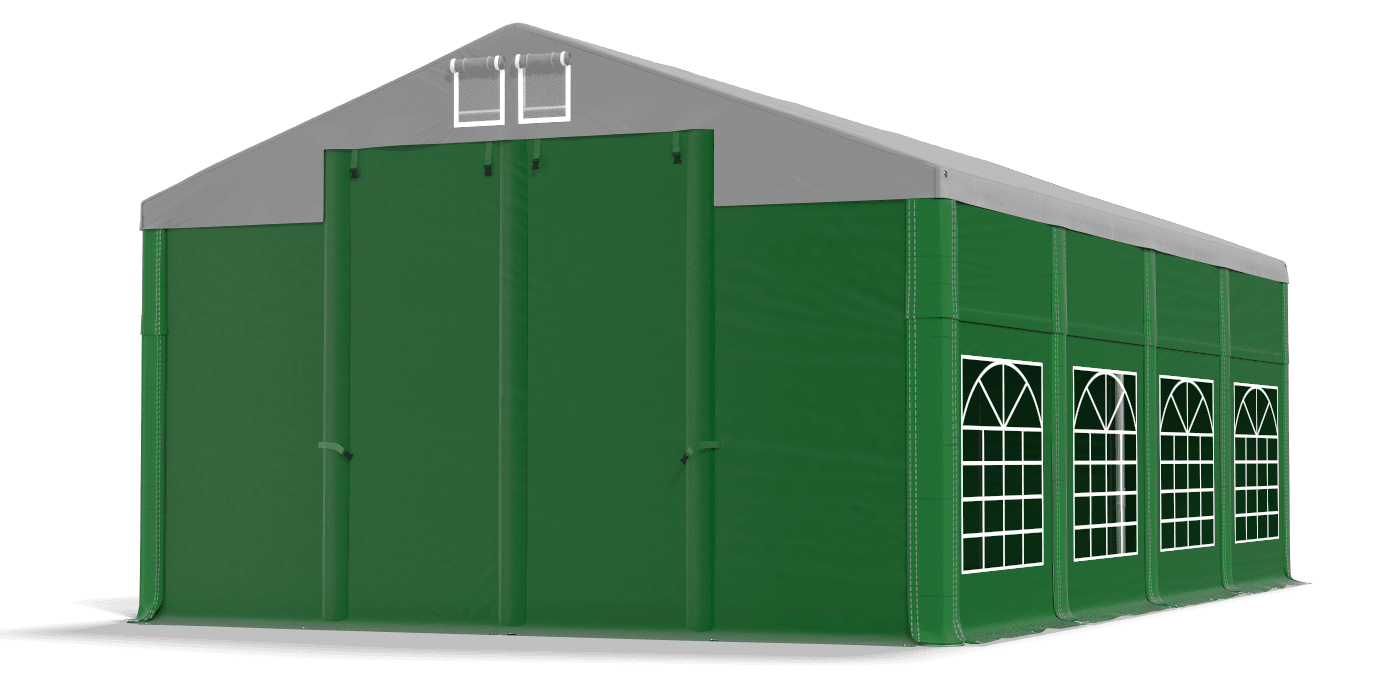 1 - Dach SD PVC (polichlorek winylu) ok. 560 g/m2 2 - Podwójna wentylacja z obu stron 3 - Wjazdy typu Slide & Roll 4 - Mocne zamki YKK przy wjazdach 5 - Rzepy uszczelniające 6 - Podniesienie ściany bocznej SD PVC ok. 2 x 1 m(polichlorek winylu) ok. 500 g/m2 7 - Wymienne Maskownice z rzepami uszczelniającymi 8 - Ściany boczne SD PVC 2 x 2 m (polichlorek winylu) ok. 500 g/m2 - Okna witrażowe 140 x 130 cm 9 - Dodatkowy fartuch retencyjny