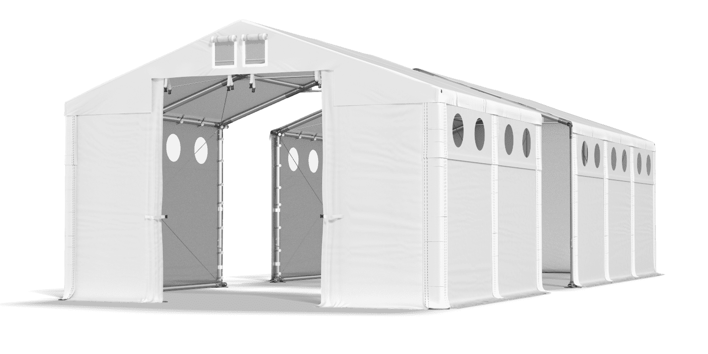 Każdy wjazd i wszystkie ściany boczne są montowane do konstrukcji namiotu oddzielnie, dlatego można w dowolny sposób łączyć ścianki pełne ze ścianami, które mają okna.