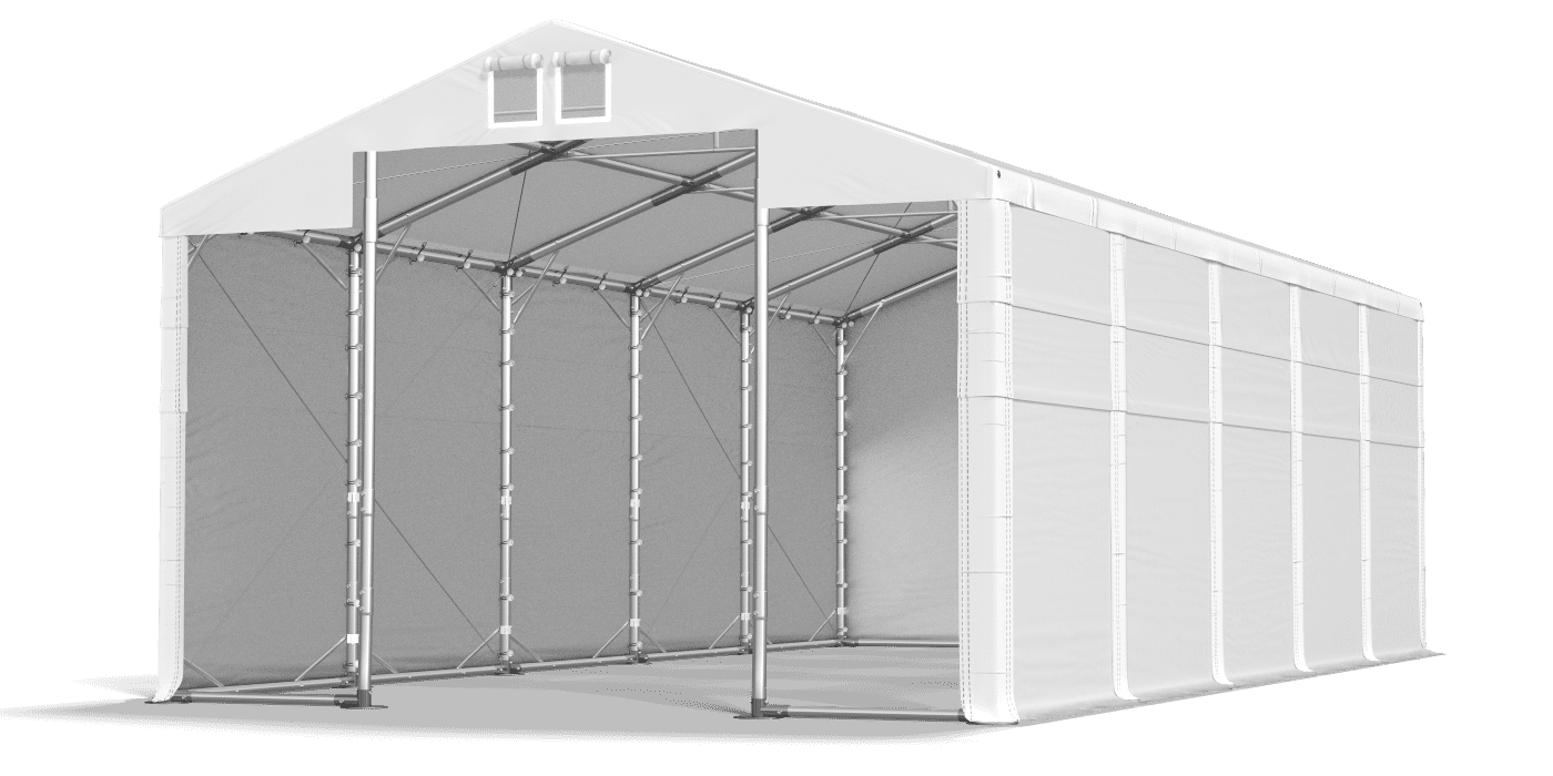 Każdy wjazd i wszystkie ściany boczne są montowane do konstrukcji namiotu oddzielnie, dlatego można w dowolny sposób łączyć ścianki pełne ze ścianami, które mają okna.