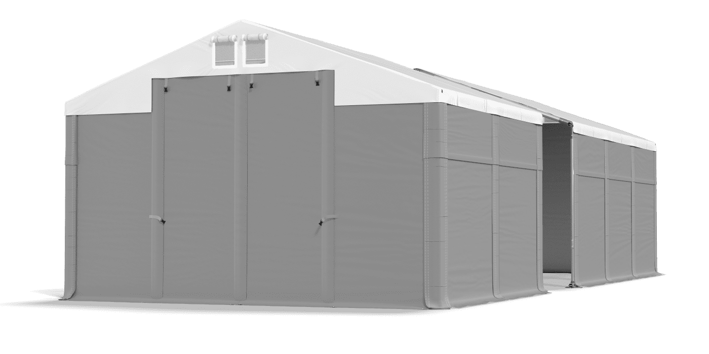 Każdy wjazd i wszystkie ściany boczne są montowane do konstrukcji namiotu oddzielnie, dlatego można w dowolny sposób łączyć ścianki pełne ze ścianami, które mają okna.